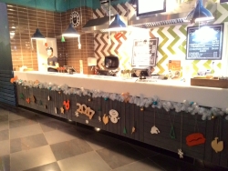 Фуд-корт "5-я станция" в ТРЦ "Небо". Нижегородский филиал ТД "Пищевые технологии" осуществил проектирование, комплексное оснащение монтажные, пусконаладочные работы фуд-корта 5-я станция. Проект включает в себя пр-ва для приготовления полуфабрикатов полного цикла, а так же 5-ть станций доготовки и раздачи готовых блюд (Бургеры, Пицца, вьетнамская кухня, салаты, бар) Срок реализации проекта под ключ с момента проектирования составил 1 месяц.