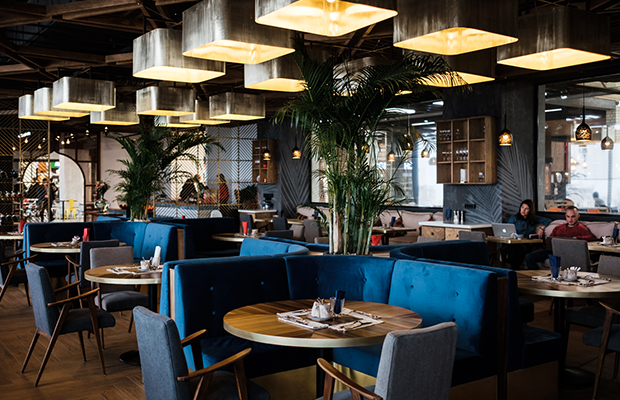 Объект расположен в ТРЦ "НЕБО".Нижегородский филиал осуществил комплексное оснащение кухни 200 кв.м. Ресторан включает в себя (Камеры хранения сырья, заготовочные цеха, холодный и горячий цех, цех выпечки, моечная кухонной и столовой посуды, бар)