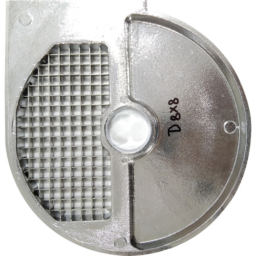 Для овощных супов, фруктовых салатов, солений, ... Для получения кубиков 8x8x8, 10x10x10, 12x12x14, 20x20x14 мм используют вместе с диском серии “EC” (EC8, EC10, EC14). Использование диска из серии EC/O позволяет производить кубики рифленые с двух сторон. Диски D8x8, D10x10, D12x12, D20x20