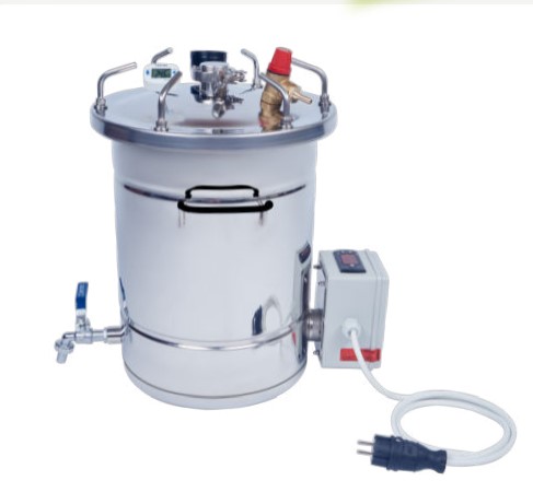 Автоматический домашний автоклав для  консервирования в режиме стерилизации. Оснащен ТЭН и электронным блоком управления (ЭБУ). Клапан для сброса лишнего давления выше 3 атм. Полностью автоматизирован.