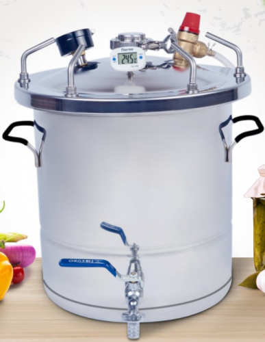 Автоклав для домашнего консервирования в режиме стерилизации. Безопасен в работе. Клапан для сброса лишнего давления выше 3 атм. Можно использовать на всех видах печей (газовая, электрическая, индукционная).