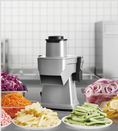 Овощерезка модели GJ817 — это профессиональное электромеханическое оборудование для нарезки сырых и вареных овощей, фруктов, а также сыров и колбас на предприятиях общественного питания.