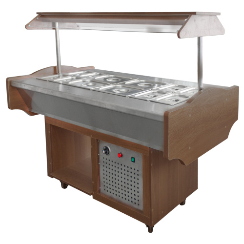 Оснащен 12 гастроемкостями глубиной 150 мм. Гастроемкости идут в комплекте. Плавная регулировка температуры от -1 до +5 С. Внизу открытая ниша для хранения кухонного инвентаря. Мармит оснащается регулируемыми по высоте ножками. Поставляется в собранном виде на поддоне. Упаковка гофрокартон и деревянная обрешетка.
