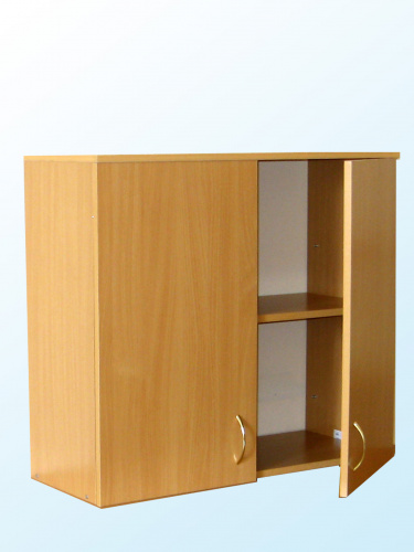 изготовлен из ЛДСП, торцы облицованы кромкой ПВХ 0,4 мм. Шкаф имеет 2 ниши, закрытых дверями. На дверях установлены ручки-скобы металлические