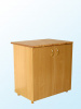 изготовлен из ЛДСП, торцы облицованы кромкой ПВХ 0,4 мм. Стол закрыт 2 дверями, внутри стола полка, столешница с пластиковым покрытием. На дверях установлены ручки-скобы металлические. Стол снабжен ножками-опорами регулируемыми по высоте