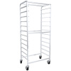 Выполнена из нержавеющей стали, оснащена 4 колесами одно из которых имеет стопор. Имеет 12 уровней, на которых можно разместить пекарские листы или противни размером 600х400 мм. Поставляется в разобранном виде. Упаковка гофрокартон. Поддоны и гастроемкости в комлект не входят.